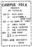 One of the people who started the University folk club was Dave Hunt, when he was Deputy Catering Manager at the Union in 1966. The folk club at Birmingham University booked some great guests, as they were supported financially by the university. They were very pro-active and showed a sense of humour in the leaflets that they produced (see examples below). The University also ran a very successful dance section, which I hope to produce an article about in the future. In the 1970's George Frampton was one of the organisers of Campus Folk, producing some of the leaflets reproduced below and he has supplied his memories of running the club during that time.