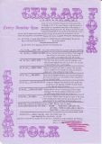 Cellar Folk was formed early in 1972 by Steve Mogg, Richard Crook, Mike Brown and John Jennings in the cellar at the Bournebrook Hotel( hence the club name). It met on Sunday nights until November 24th 1973, when it had to move as the cellar was to be converted into a posh bar .The club moved to the Junction in Harbourne and changed its name to Cellar Folk Too, opening on December 2nd 1973., where they stayed until July 28th 1974. The club then moved to the Mitre Inn in Stourbridge, opening on August 18th 1974 as The Seven Whistlers Folk Club and known to be still running in December 1984.