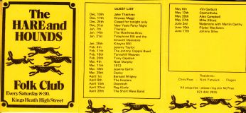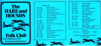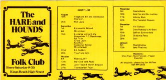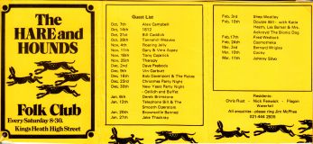 Early residents at the Hare & Hounds were:- Chris Rust, Nigel Fenwick and a group called Flagon.