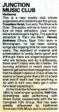 The opening night of this club was Thursday 11th September 1986 with Harvey Andrews as their guest. and Glorishears Morris Dance team were also appearing. The flyer seen below apparently advertises guests booked in March/April 1990 so the club still appears to have been running then.. Please get in touch if you have any further information.