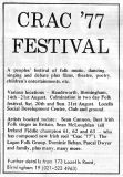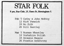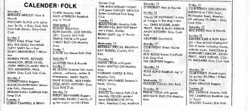 The "What's On" section was a mixed bag of all styles of music, and included rock ,pop, soul, reggae, folk jazz and classical. I have scanned all the "What's On" pages from June 1976 to September 1978 , plus any articles or adverts about folk clubs etc. John Denny kindly gave me the copies of Broadside, which start at issue 2. The last issue as a magazine was published in January 1978, with issue 28 in February 1978 being a newspaper style publication. The scans can be viewed by clicking on the thumbnails below.